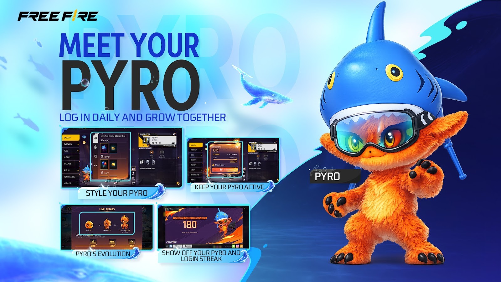The update also introduces a new Login Streak System, featuring Free Fire mascot Pyro as a symbol of player activity. Daily logins not only build login streak progress, but also activate Pyro, progressively unlocking new appearances and accessories. Maintaining a consistent streak increases the opportunity to earn exclusive high-tier rewards.