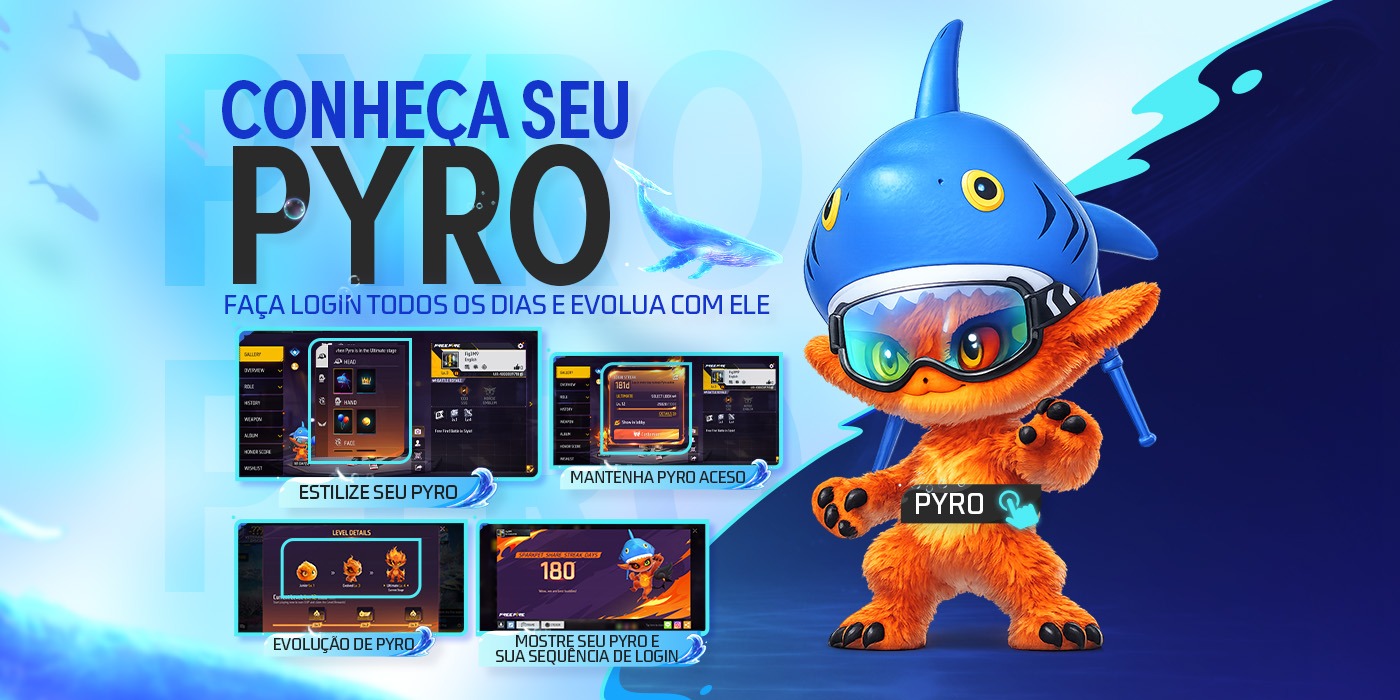 A atualização também traz o sistema de Sequência de Login, com o mascote Pyro acompanhando a atividade dos jogadores. Ao fazer login todos os dias, o jogador avança na sequência e acende o Pyro, desbloqueando novas aparências e acessórios progressivamente. Quanto maior a sequência, maiores as chances de garantir recompensas especiais de alto nível.