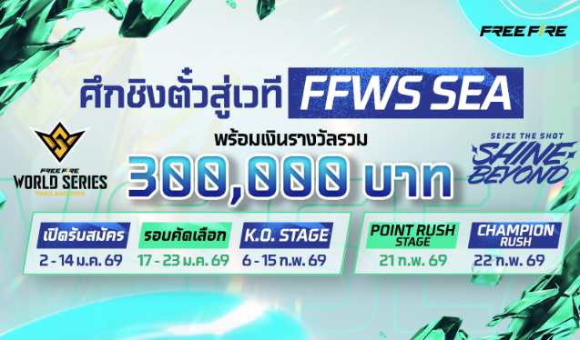 สำหรับผู้เล่นที่ต้องการร่วมเป็นส่วนหนึ่งของจุดเริ่มต้นบนเวทีการแข่งขันระดับโลก สามารถติดตามการแข่งขันรอบคัดเลือกรายการแรกของปีอย่าง FFWS Thailand 2026 Spring ทัวร์นาเมนต์เปิดฤดูกาลที่ทำหน้าที่เฟ้นหาเพียง 1 ทีมที่แข็งแกร่งที่สุดของประเทศไทย เพื่อคว้าสิทธิ์เข้าสู่การแข่งขันระดับเอเชียตะวันออกเฉียงใต้ในรายการ FFWS SEA 2026 Spring ก่อนจะก้าวต่อไปสู่เส้นทางการแข่งขันระดับโลกใน Esports World Cup 2026: Free Fire