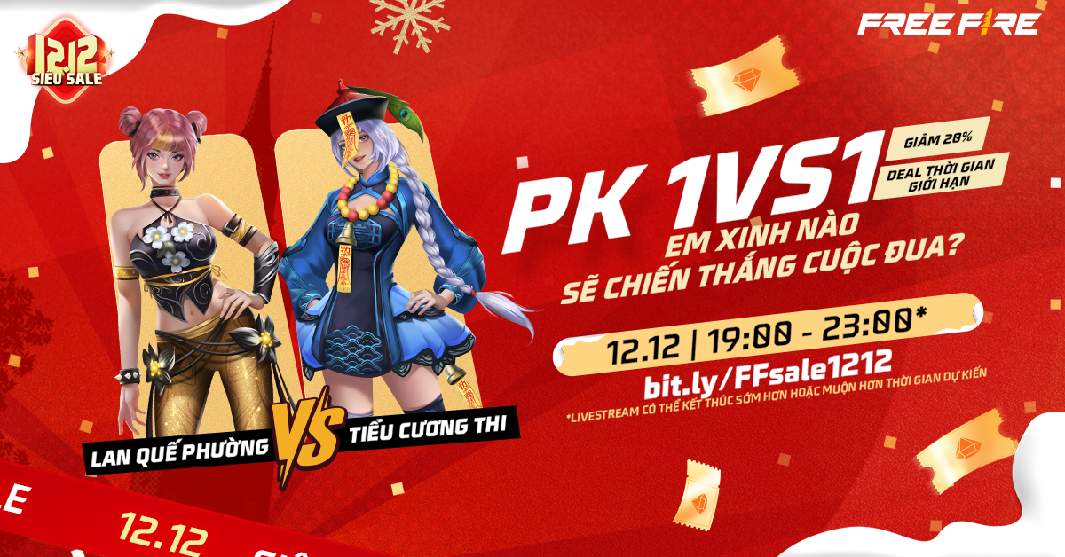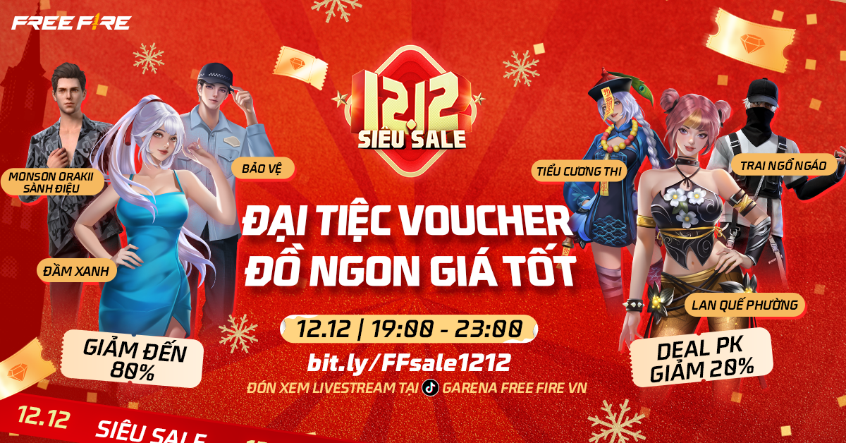 FREE FIRE CÔNG BỐ LIVESTREAM SIÊU SALE 12.12 – SĂN DEAL KHỦNG, VOUCHER GIẢM ĐẾN 80%